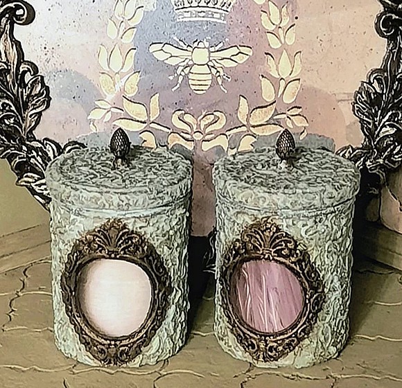 Сможете сочетать трафареты с накладным барельефом, выделяя глубину патиной и акцентными красками.