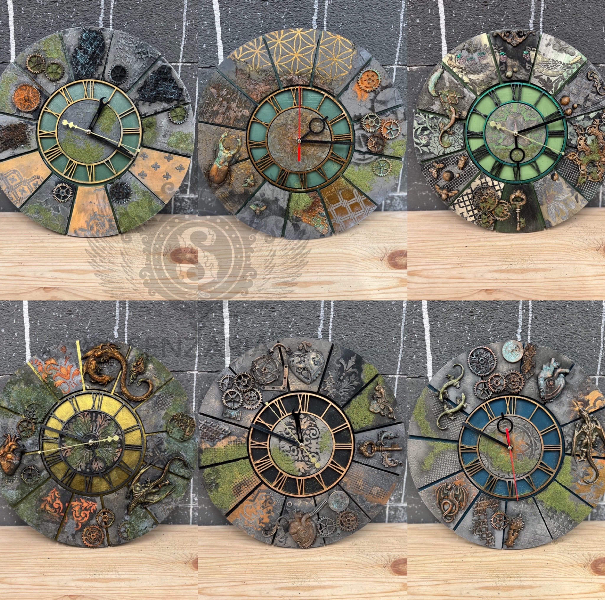 Часы не мебель, но интерьерный арт-объект. Их можно задекорировать в любой технике с нашего курса «Мебель, как арт-объект» или «Авторская плитка». Хочу предложить вам задекорировать нашу заготовку "ОЛИВЕР" в стиле Лофт под камень с трафаретами и металлическими зонами и имитацией мха. Либо в стиле Стим-Панк, где много ржавых шестеренок и механизмов, черненый металл и кракелюрные трещинки.