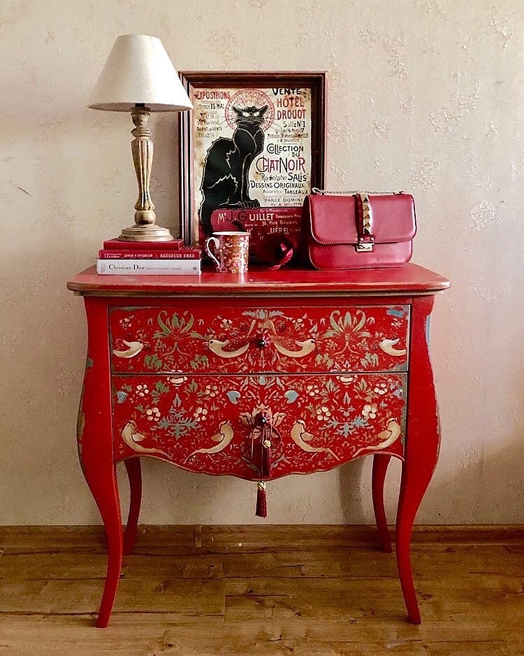 Волшебный по своей красоте трафарет, такие мельчайшие детали! Любой неказистый предмет с этим трафаретом будет выглядеть восхитительно! У меня пока не хватает умения работать с такой красотой, и трафарет немного получился смазанным, но, как ни странно, этому трафарету ничего не страшно! В смазанном виде эффект получился более винтажным! Мне очень понравилось!